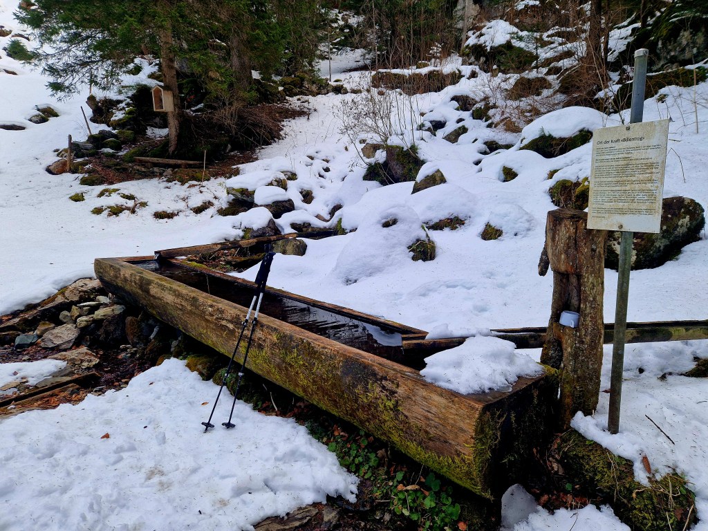 Der Trail 885 führt am Billentrog vorbei. Dieser Platz gilt als Kraftort. Eine kleine Geländemulde mit einem Brunnen und besonderer Atmosphäre, ruhig gelegen und fast ein wenig geheimnisvoll. Man sagt, hier sei die Energie besonders spürbar. Ob man daran glaubt oder nicht, es ist ein Ort, an dem man automatisch langsamer wird.
